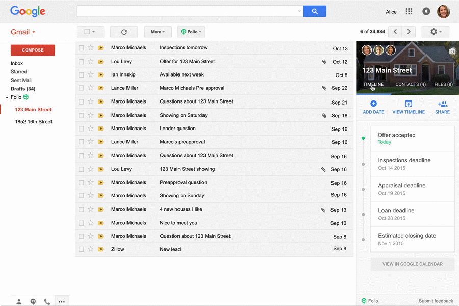 Finally, if you’re not someone who can keep your email organized on a regular basis, and you’d like that feature automatically built in, as well as provide a timeline for each transaction and easy access to the documents associated with the deal, you’ll want to at least consider Amitree’s Folio.