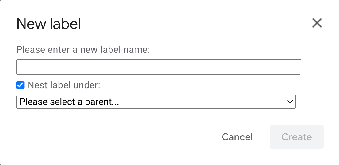 Some suggested Labels for your Gmail account include: Buyers, Sellers or Listings, Closed Transactions, Rentals, and Business Expenses. Another way of organizing them is to put the current year in front of those, i.e., ‘2022 Buyers’, to better sort them out. One nice thing about Labels is that you can ‘nest’ a label underneath it. You can do that by creating a new label, and then following the instructions to choose which label it should ‘nest’ underneath.