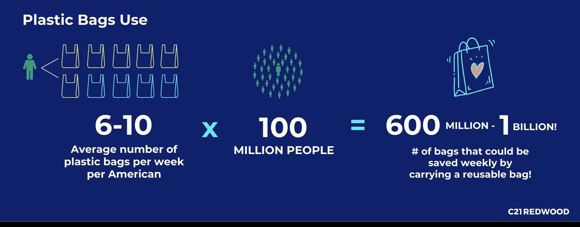 - Stop using plastic grocery bags. Bringing your own reusable bags with you will save an average of 6-10 plastic bags weekly. Multiply that by 100 million people, and we’ll save 600 million to 1 billion bags weekly!