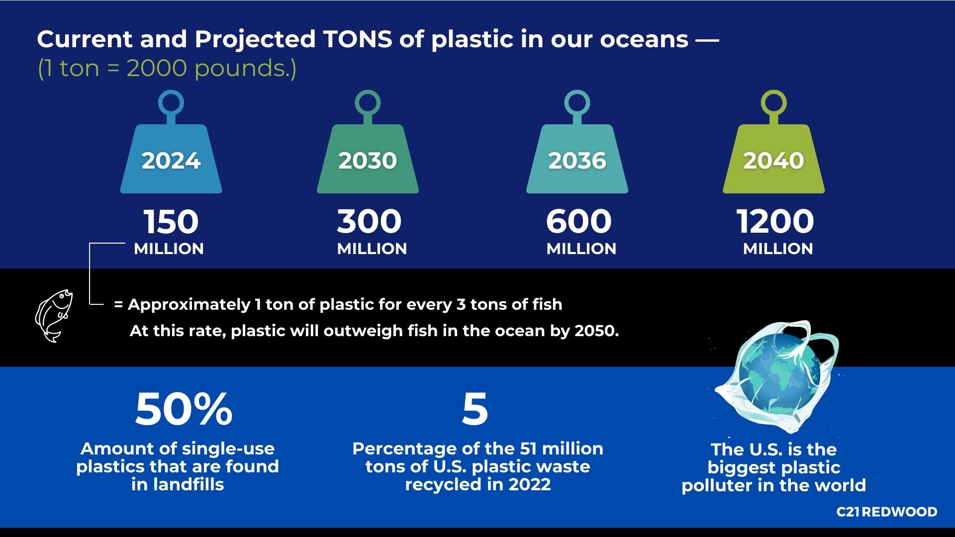 - If plastic pollution continues at the current rate and isn’t curbed by 2050, it will outweigh fish in our oceans pound for pound.