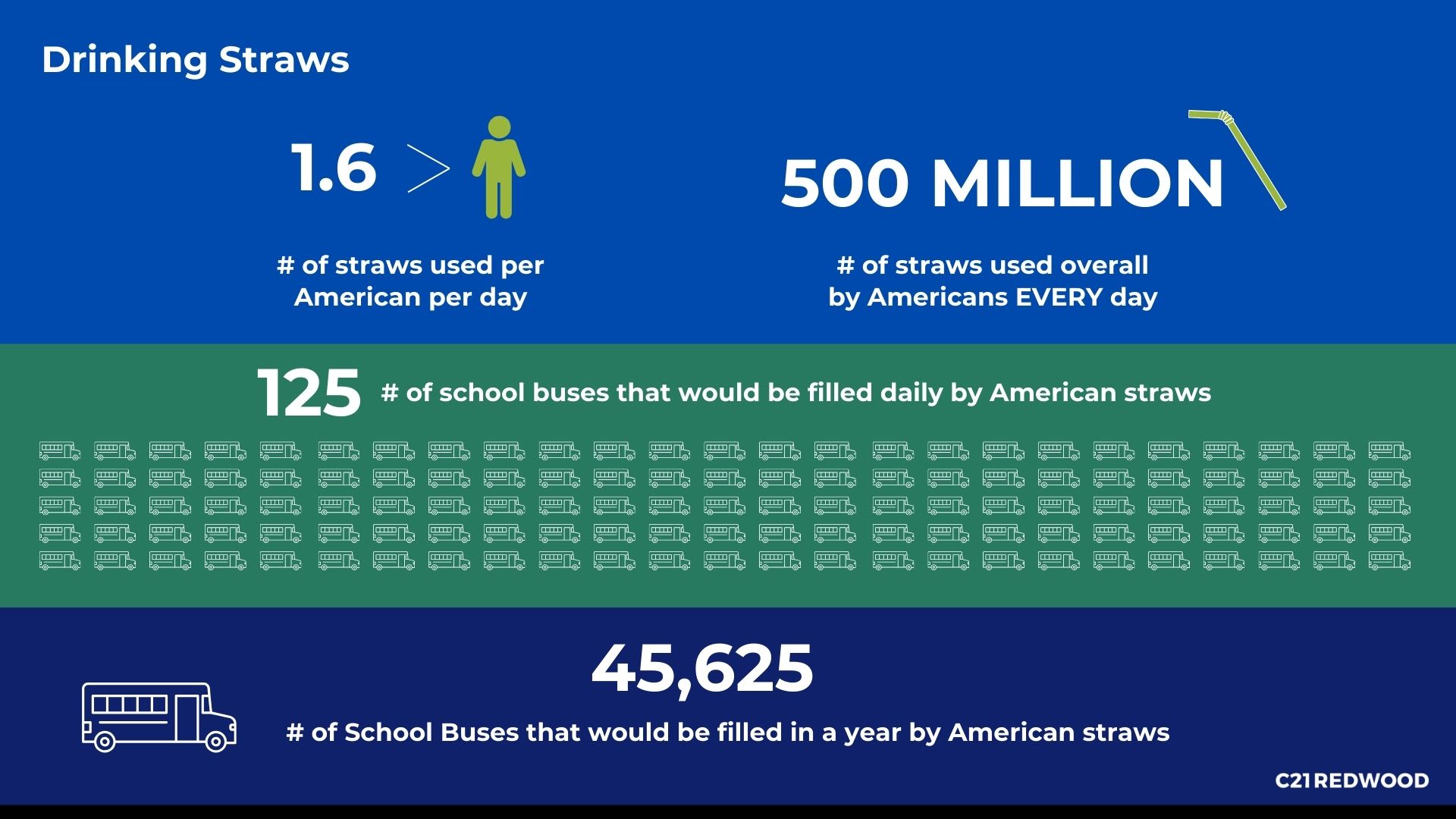 Drinking straws may not seem like a lot of plastic, but they add up quickly. Instead of getting plastic straws at restaurants or cafes, you can bring your own reusable straw or simply go straw-free.