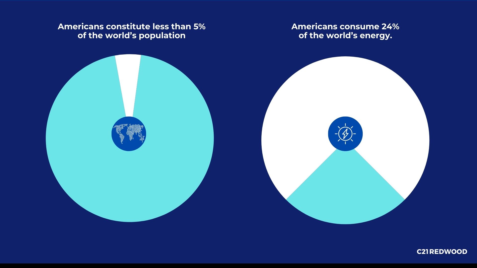 - Americans are the biggest consumers on the planet. Even though Americans constitute less than 5% of the world’s population, we consume 24% of the world’s energy.