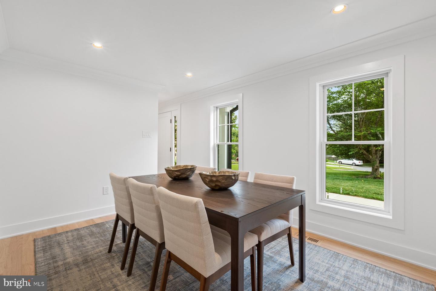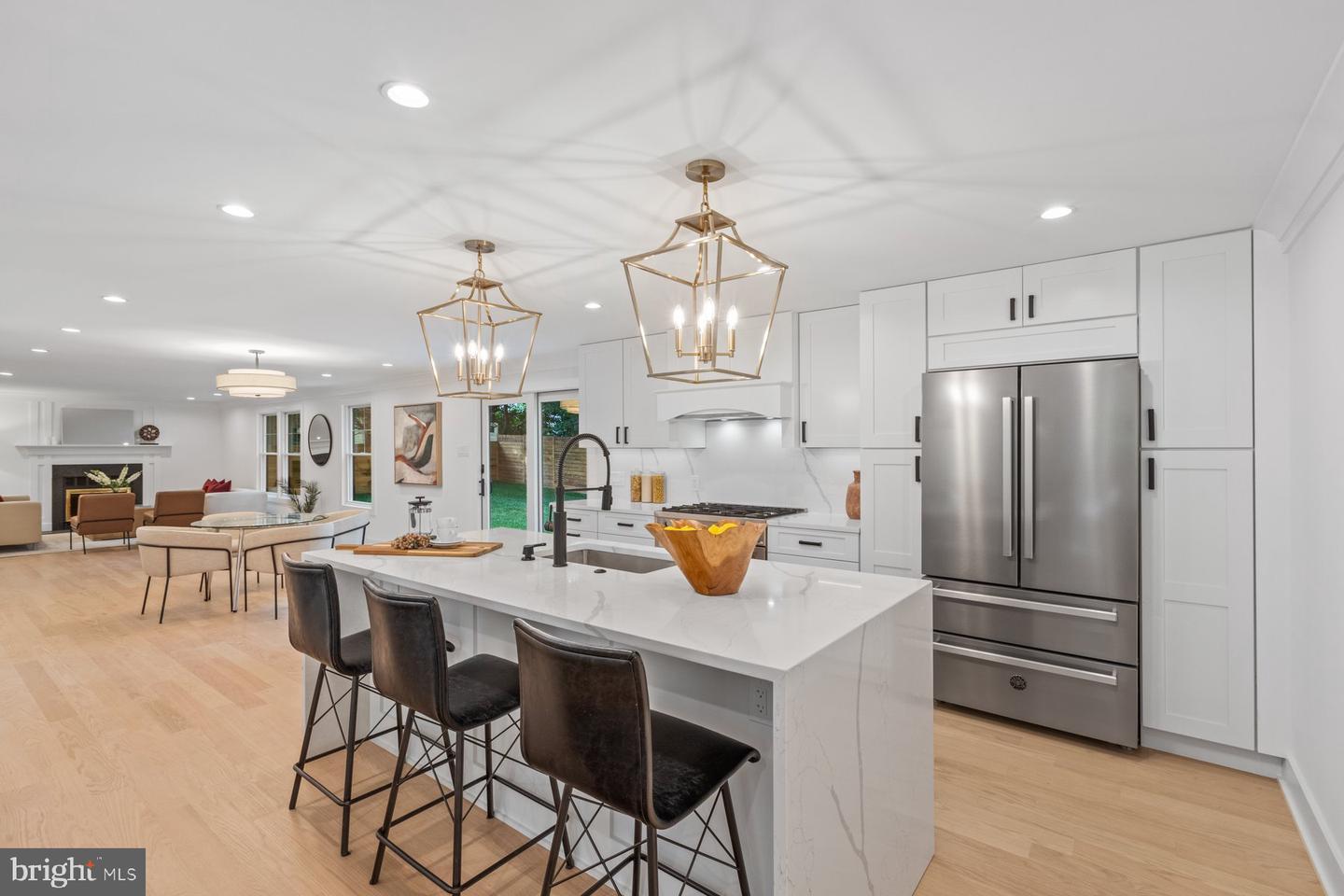 Welcome to this rare gem, a beautiful colonial home in the highly sought-after neighborhood of White Flint Park, one of only seven unique models in this subdivision. Situated in a private cul-de-sac, this home features an open floor plan with 5 bedrooms, 3.5 baths, and a full-view car garage. Spanning 3,400 square feet, it has been completely renovated from top to bottom. The main and upper levels showcase double-hung Anderson windows, recessed lighting, Red Oak hardwood flooring, and crown molding throughout. Upon entering, to the right is a lovely living room filled with natural light, which opens to a gourmet kitchen equipped with stainless steel appliances, under-cabinet lighting, ample cabinets and drawers, and an island adorned with elegant Laurel Ridge pendant lighting. Adjacent to the kitchen is a breakfast area with a Semi-Flush Drum ceiling light fixture and a cozy family room with a fireplace, with a conveniently located powder bathroom nearby. To the left of the entrance is an elegant dining room, great for entertaining and family gatherings. The upper-level features four spacious bedrooms and two full bathrooms. The master bedroom suite boasts a bronze metal shade ceiling fixture, large windows with natural lighting, and three sizable closets. The master bathroom provides His and Hers sinks with champagne bronze faucets and shower heads, and tile floors. The lower level includes Windlass Collection luxury vinyl flooring, recessed lighting, one bedroom used as an au pair or in-law suite, a full bathroom, a bar with a built-in wine cooler, a huge open recreation area, and an exit to the backyard. The fenced-in flat backyard with a patio is great for summer night grilling and entertainment. Additional upgrades include a new Samsung washer and dryer and a new 50-year shingle roof with a 5-year warranty.