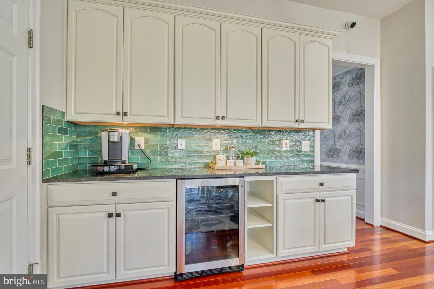The gourmet kitchen, designed in crisp white with bold black accents, is the heart of the home. It features an large island with prep sink, oversized breakfast area with built-in cabinets and a beverage refrigerator, offering a perfect balance of beauty and practicality. Storage is abundant, with a walk-in pantry, a separate laundry room, and a generously sized mudroom with built-in organizers, all conveniently located just off the kitchen. A private library with glass French doors offers a quiet and elegant space for working from home.