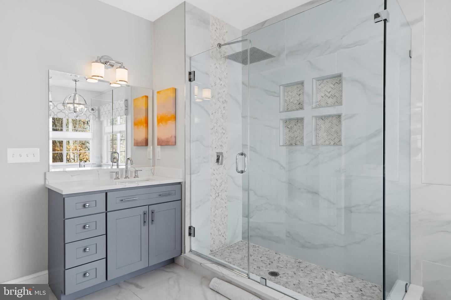 Welcome to 42758 Forest Crest Ct, Ashburn! This home is located in the highly desirable neighborhood - The Estates at Forest Ridge and nestled on a serene half-acre flat wooded lot. This stunning four-bedroom, four-and-a-half-bath home offers the perfect blend of elegance, comfort, and outdoor potential--whether you envision a pool, or simply enjoying the lush, private backyard. From the moment you arrive, you'll be captivated by the impressive curb appeal, mature trees, and manicured landscaping. A long driveway leads to a side-entry three-car garage, and the fully fenced backyard is ready for entertaining, play, and relaxation. Step inside a home designed for both luxury and function. The bright and welcoming two-story foyer showcases custom touches throughout. The heart of the house is the gourmet kitchen, which features granite countertops, custom cabinetry, and high-end appliances. Large windows and a cozy fireplace, perfect for gathering frame the spacious family room. The main level also boasts a formal dining room, main floor office and lovely living room. To enjoy the outdoors, there is a fully screen-in porch, deck, and patio directly outside of the kitchen. The primary suite is a true retreat on the upper level, complete with a tray ceiling, sitting area, and a spacious walk-in closet. The fully renovated primary bath features gorgeous tile work, a free standing soaking tub, a glass-enclosed shower, and designer finishes. The upper level also includes a large second bedroom with an en-suite bath and two additional bedrooms connected by a Jack-and-Jill bathroom. A well-appointed laundry room is conveniently located on this level. The lower level is built for fun and functionality with a fashionable wet bar, a bonus room perfect for a home office or guest suite, a renovated full bathroom, a gym, and plenty of storage space. Located just minutes from parks, trails, shopping, dining and in the sought-after Briar Woods school district, this home truly has it all. Schedule your private showing today and make THIS home yours!