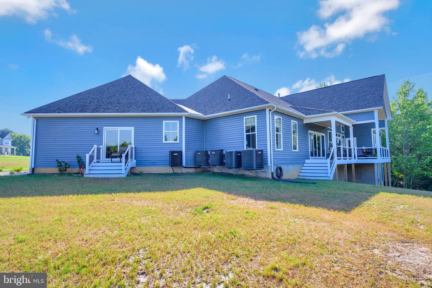 This gorgeous estate custom-built home is waiting for you to make it yours! Located on 4 acres, including a 2-acre private pond that has been on the property since the 1950's, with exquisite designs throughout, you won't want to leave. Enjoy relaxing on the extra-wide front porch, beautifully finished with slate and stone. Go inside and enjoy reading a book in the flawless living room with a coffered ceiling, built-in shelving, and large windows overlooking the property. The free-standing stone fireplace will be perfect for keeping you warm on chilly evenings. The stunning gourmet kitchen is a chef's dream, with the oversized island, top-of-the-line kitchen-aid appliances (including a trash compactor and ice-maker), detailed farmhouse sink, top-line quartz counters, and creamy white cabinets with pull-out shelving. The expansive primary suite is the perfect retreat with a trey ceiling, a walk-in closet big enough to be its own bedroom, with custom built-ins, and french doors that lead to the covered deck. The primary bath is beautifully tiled with a free-standing cast iron tub from the 1830's, his and her vanities, and a walk-in shower with pebbled floor, double shower heads, and a built-in seat. The lower level is ready for entertaining. Classy wet bar with ice maker, plenty of space for a pool table, game table, media or hobby room, and a level walk out to the backyard. That's not all! In-law-suite, with its own large and beautiful kitchen, bedroom, bathroom, and living area, has its own private entrance to and from the home. The home boasts a beautiful covered trex deck, perfect for relaxing with cocktails or morning coffee, a 3 car attached garage, and an additional 3 car detached garage.